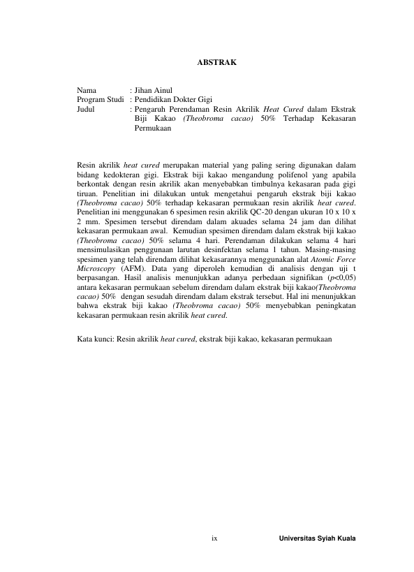 Baca Juga : PENGARUH KONSENTRASI EKSTRAK DAGING PALA (MYRISTICA FRAGRANS) TERHADAP KEKASARAN PERMUKAAN BASIS RESIN AKRILIK HEAT CURED (ASRI MELATI, 2024)