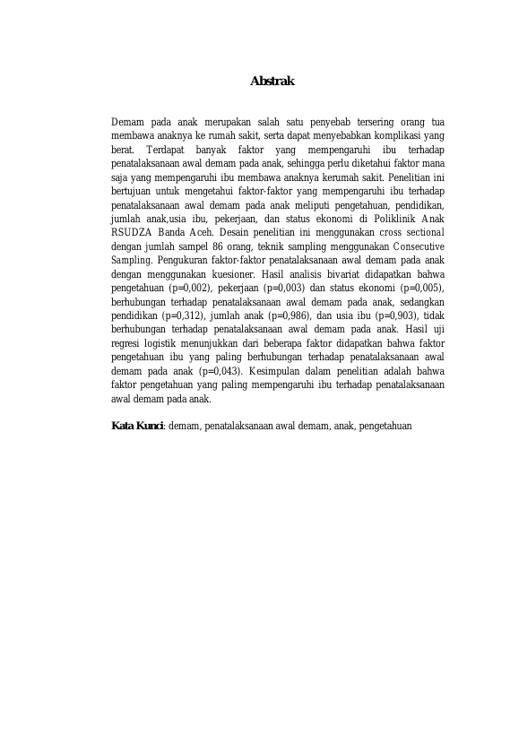 Baca Juga : GAMBARAN PENGETAHUAN IBU TENTANG UPAYA PENANGANAN KEJANG DEMAM PADA ANAK DI KECAMATAN BAITURRAHMAN BANDA ACEH (SITI HAJIA RAHMANI, 2025)