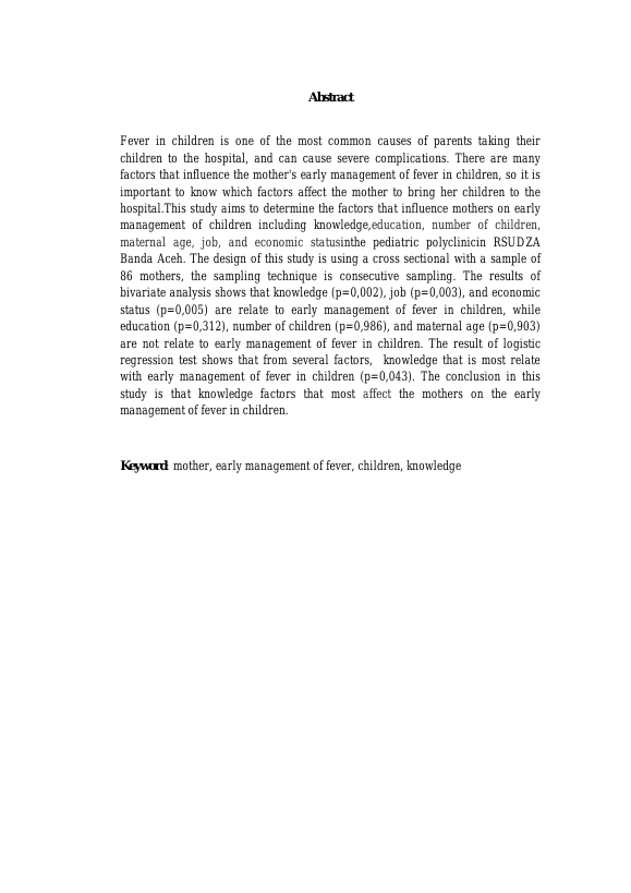 Baca Juga : GAMBARAN PENGETAHUAN IBU TENTANG UPAYA PENANGANAN KEJANG DEMAM PADA ANAK DI KECAMATAN BAITURRAHMAN BANDA ACEH (SITI HAJIA RAHMANI, 2025)