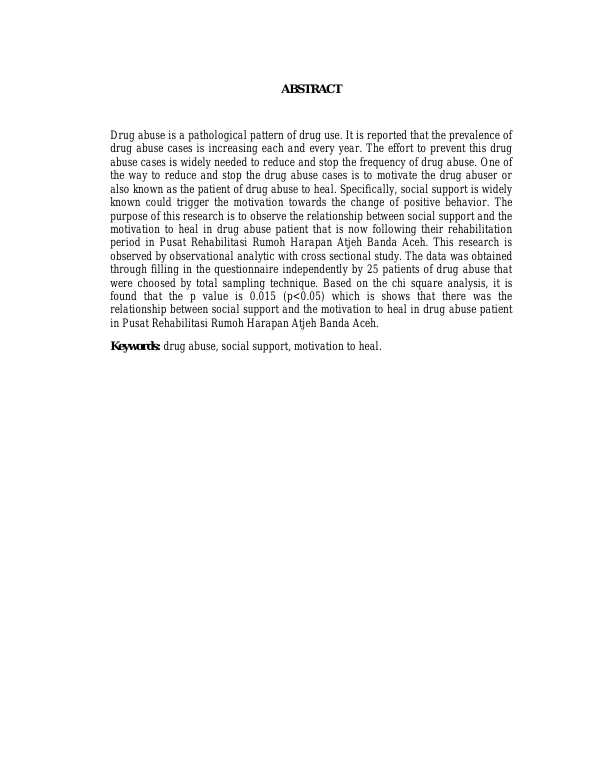 Baca Juga : HUBUNGAN DUKUNGAN KELUARGA DENGAN MOTIVASI UNTUK SEMBUH PADA RESIDEN DI INSTALASI REHABILITASI NAPZA DI BANDA ACEH (Adinda Oktaviani, 2019)