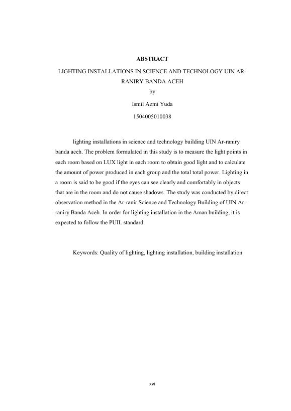 ISMIL AZMI YUDA, ISNTALASI PENERANGAN DI GEDUNG SAIN DAN TEKNOLOGI UIN AR-RANIRY BANDA ACEH. Banda Aceh Universitas Syiah Kuala,2019
