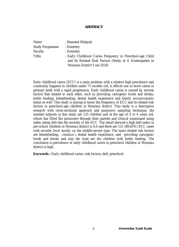Baca Juga : PREVALENSI EARLY CHILDHOOD CARIES (ECC) DAN FAKTOR RISIKO YANG MEMPENGARUHINYA (STUDI PADA ANAK PRASEKOLAH DI TK AL-KAWANAD, TK ANNISA ARFAH, DAN TK ANZIB LAMNYONG KECAMATAN SYIAH KUALA KOTA BANDA ACEH) (SHELVI HENDALIA, 2023)