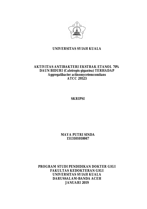 Baca Juga : POTENSI ANTIBAKTERI EKSTRAK ETANOL 70% DAUN BIDURI (CALOTROPIS GIGANTEA) TERHADAP PORPHYROMONAS GINGIVALIS ATCC 33277 (Novita Putri Ranggaswuni, 2019)