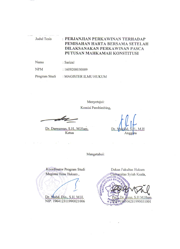 Baca Juga : PERJANJIAN PERKAWINAN TERHADAP PEMISAHAN HARTA BERSAMA SETELAH DILAKSANAKAN PERKAWINAN PASCA PUTUSAN MAHKAMAH KONSTITUSI NOMOR 69/PUU-XIII/2015 (SARIZAL, 2019)
