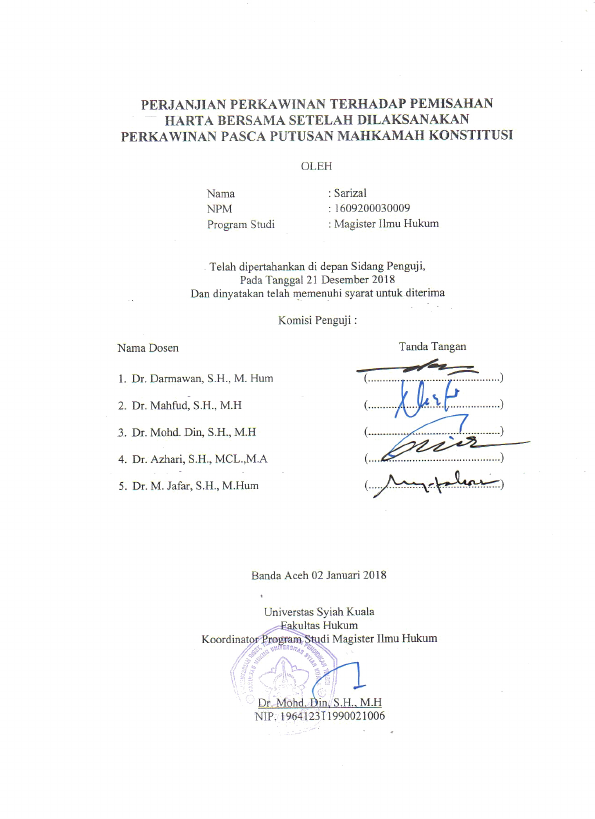 Baca Juga : PERJANJIAN PERKAWINAN TERHADAP PEMISAHAN HARTA BERSAMA SETELAH DILAKSANAKAN PERKAWINAN PASCA PUTUSAN MAHKAMAH KONSTITUSI NOMOR 69/PUU-XIII/2015 (SARIZAL, 2019)