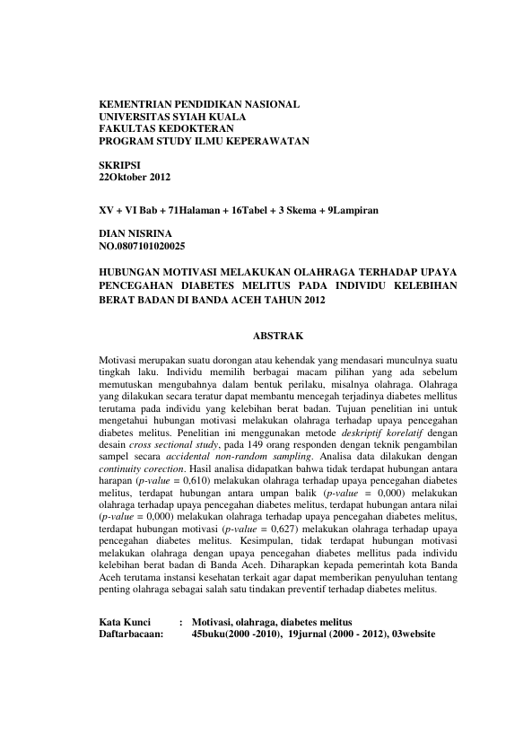 Baca Juga : HUBUNGAN PENGETAHUAN TENTANG LATIHAN FISIK DENGAN MOTIVASI MELAKUKAN LATIHAN FISIK PADA PASIEN DIABETES MELLITUS TIPE II DI POLIKLINIK ENDOKRIN BLUD RSUD DR. ZAINOEL ABIDIN BANDA ACEH TAHUN 2012 (Zuhri Ramadhan, 2023)