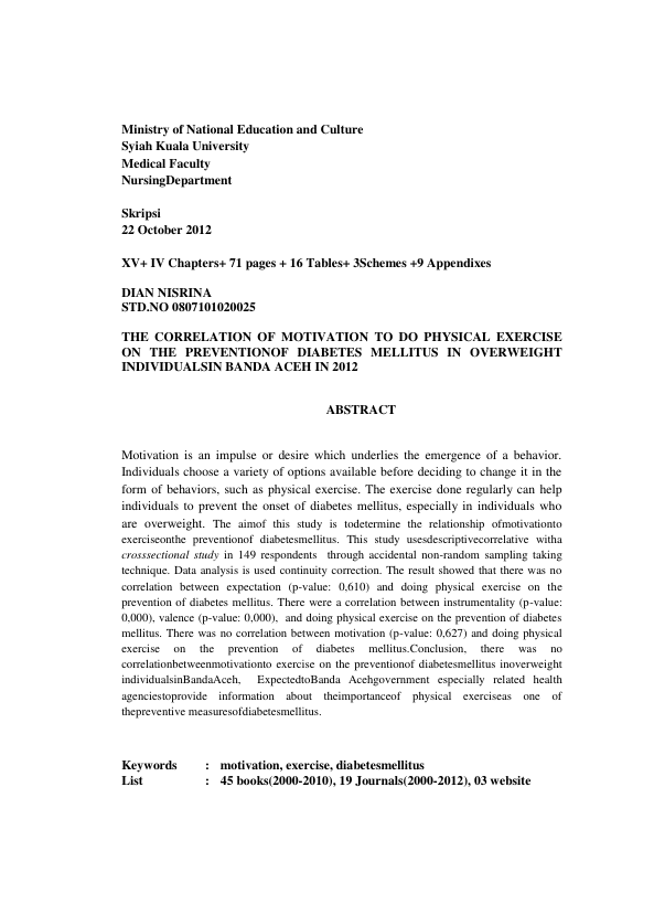 Baca Juga : HUBUNGAN PENGETAHUAN TENTANG LATIHAN FISIK DENGAN MOTIVASI MELAKUKAN LATIHAN FISIK PADA PASIEN DIABETES MELLITUS TIPE II DI POLIKLINIK ENDOKRIN BLUD RSUD DR. ZAINOEL ABIDIN BANDA ACEH TAHUN 2012 (Zuhri Ramadhan, 2023)