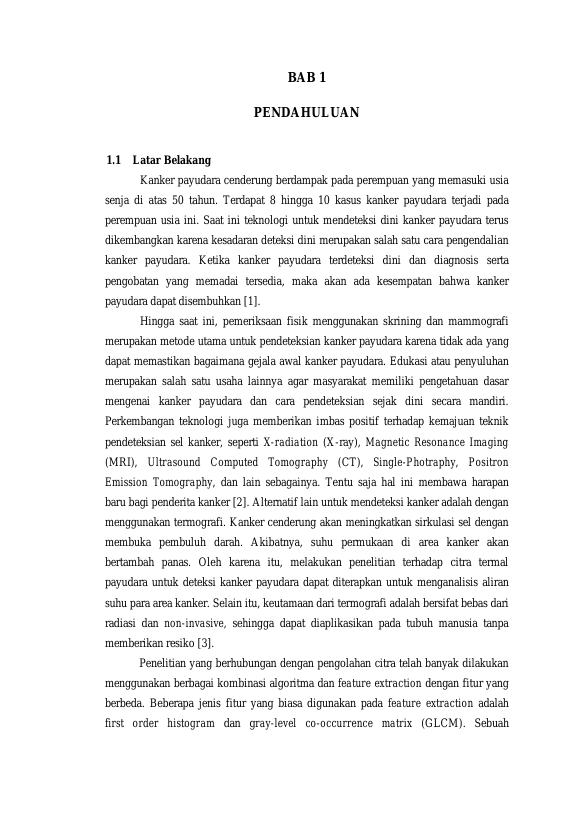 Mentari Bella Al Rasyid, DETEKSI KANKER PAYUDARA BERBASIS FITUR CITRA TERMAL DAN KLASIFIKASI K-NEAREST NEIGHBOR (KNN). Banda Aceh Program Studi Magister Teknik Elektro Universitas Syiah Kuala,2018