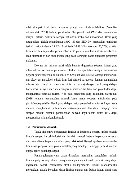 DEWI OETARY, SINTESIS PLASTIK BIODEGRADABLE DARI PATI BONGGOL PISANG DENGAN PENAMBAHAN NANOPARTIKEL KITOSAN, SORBITOL, DAN MINYAK KAYU MANIS (CINNAMOMUM BURMANNII) SEBAGAI ZAT ANTIOKSIDAN. Banda Aceh Program Studi Magister Teknik Kimia Universitas Syiah Kuala,2019