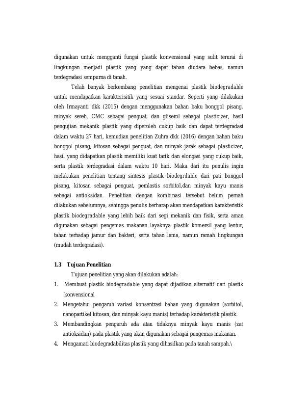 Baca Juga : PEMBUATAN PLASTIK BIODEGRADABLE DARI CAMPURAN POLIPROPILENA DAN PATI SAGU (Nur Iklimawati, 2022)