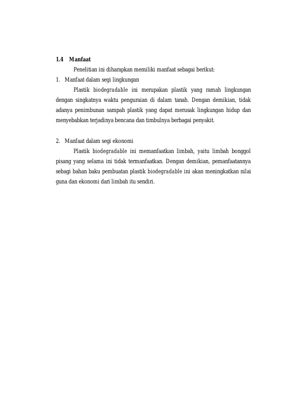 Baca Juga : PEMBUATAN PLASTIK BIODEGRADABLE DARI CAMPURAN PATI UBI KAYU (MANIHOT ESCULENTA CRAUTZ.) DAN CAMPURAN LIMBAH PLASTIK POLIPROPILENA (Dahyu Maulina, 2022)