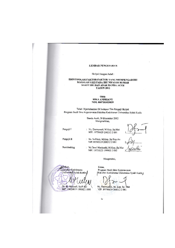 RIKA ANDRIANY, IDENTIFIKASI FAKTOR-FAKTOR YANG MEMPENGARUHI MASALAH GIZI PADA IBU NIFAS DI RUMAH SAKIT IBU DAN ANAK BANDA ACEH TAHUN 2012. Banda Aceh Fakultas Keperawatan,2012