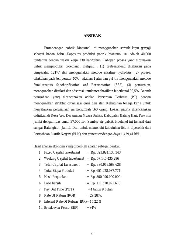 Baca Juga : PRARANCANGAN PABRIK BIOETANOL DARI SERBUK KAYU GERGAJI DENGAN KAPASITAS PRODUKSI 40.000 TON/TAHUN (Rosa Ardela, 2019)