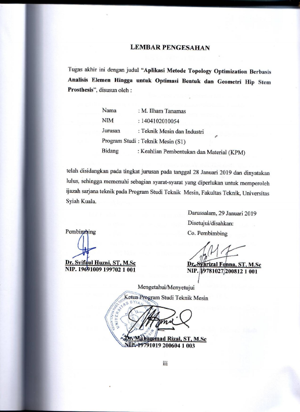 Baca Juga : APLIKASI METODE TOPOLOGY OPTIMIZATION BERBASIS ANALISIS ELEMEN HINGGA UNTUK OPTIMASI BENTUK DAN GEOMETRI HIP STEM PROSTHESIS (M ILHAM TANAMAS, 2019)