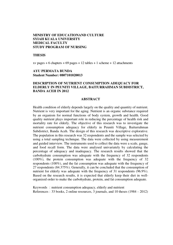 Baca Juga : GAMBARAN PEMENUHAN KEBUTUHAN NUTRISI PADA LANSIA DI GAMPONG PEUNITI KECAMATAN BAITURRAHMAN BANDA ACEH TAHUN 2012 (Ayu Permata Bunda, 2022)