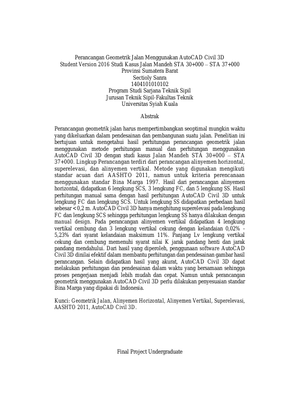 Baca Juga : EVALUASI PERENCANAAN GEOMETRIK JALAN MENGGUNAKAN AUTOCAD® CIVIL 3D STUDENT VERSION 2021 (STUDI KASUS: JALAN BANDA ACEH OUTER RING ROAD) (Arif Rifqi, 2024)