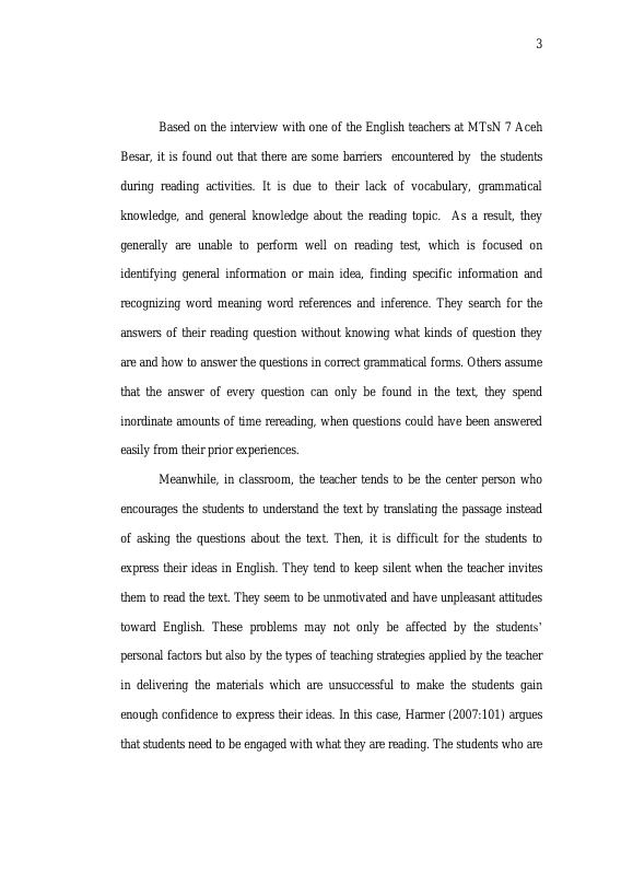Baca Juga : THE IMPLEMENTATION OF QUESTION ANSWER RELATIONSHIP STRATEGY TRAINING IN READING COMPREHENSION (AN EXPERIMENTAL STUDY AT SMP INSHAFUDDIN BANDA ACEH) (Rahmi Akmal Hussin, 2018)