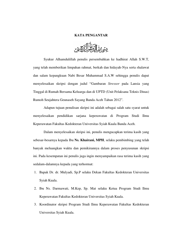 ZUHAIRA F, GAMBARAN STRESSOR PADA LANSIA YANG TINGGAL DI RUMAH BERSAMA KELUARGA DAN DI UPTD (UNIT PELAKSANA TEKNIS DINAS) RUMOH SEUJAHTERA GEUNASEH SAYANG BANDA ACEH TAHUN 2012. Banda Aceh Fakultas Keperawatan,2012