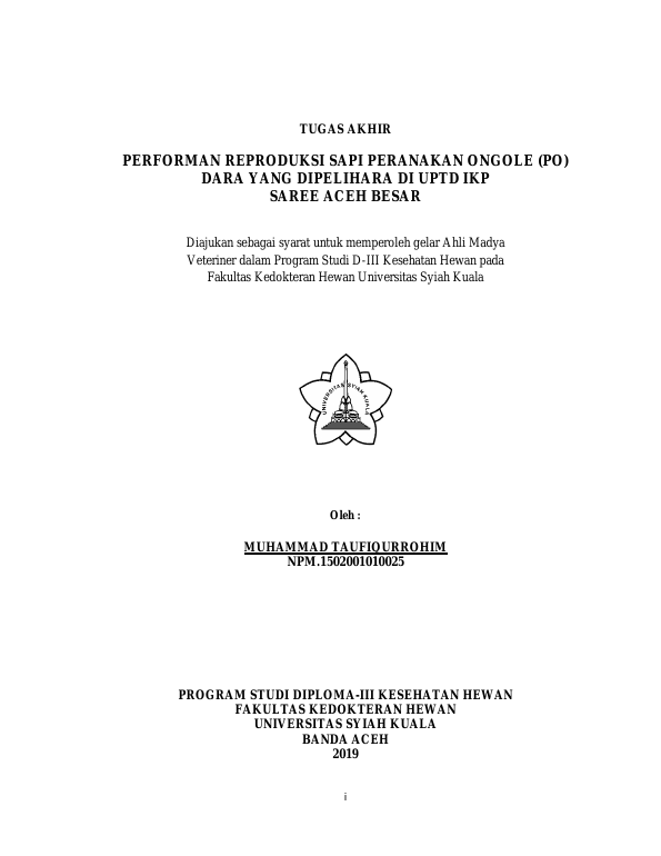 MUHAMMAD TAUFIQURROHIM, PERFORMAN REPRODUKSI SAPI PERANAKAN ONGOLE (PO) DARA YANG DIPELIHARA DI UPTD IKP SAREE ACEH BESAR. Banda Aceh Universitas Syiah Kuala,2019