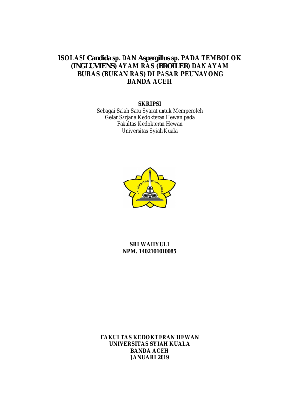 Baca Juga : IDENTIFIKASI CANDIDA SP PADA TEMBOLOK AYAM KAMPUNG (GALLUS GALLUS DOMESTICUS) DAN ITIK (ANAS PLATYRHYNCHOS DOMESTICUS) (NUR RAHMI, 2019)
