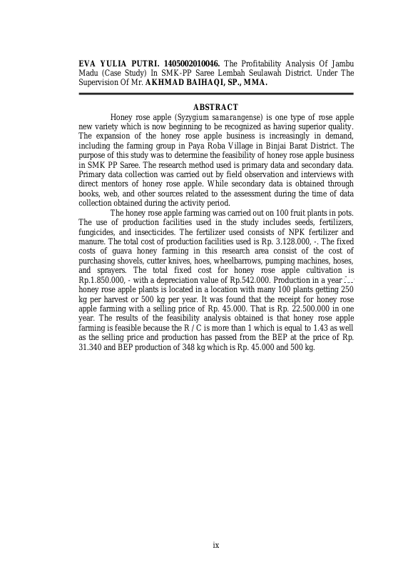 EVA YULIA PUTRI, ANALISIS KELAYAKAN JAMBU MADU DI SMK-PP NEGERI SAREE KECAMATAN LEMBAH SEULAWAH KABUPATEN ACEH BESAR. Banda Aceh Universitas Syiah Kuala,2019