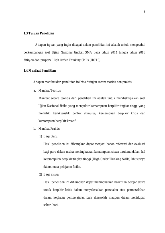 Baca Juga : ANALISIS SOAL UJIAN SEMESTER GANJIL MATA PELAJARAN FISIKA KELAS XII DI SMA NEGERI SE - KABUPATEN ACEH TENGAH BERDASARKAN KARAKTERISTIK SOAL HOTS (Rona Aprilia, 2020)