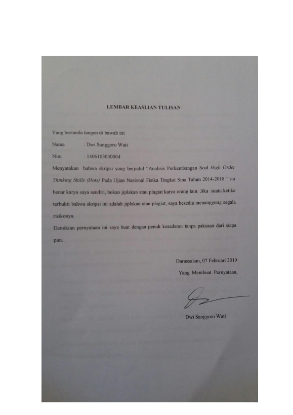 Baca Juga : ANALISIS SOAL UJIAN SEMESTER GANJIL MATA PELAJARAN FISIKA KELAS XII DI SMA NEGERI SE - KABUPATEN ACEH TENGAH BERDASARKAN KARAKTERISTIK SOAL HOTS (Rona Aprilia, 2020)