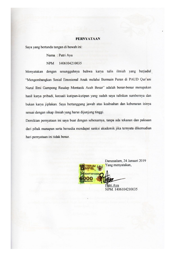 Baca Juga : PERKEMBANGAN SOSIAL EMOSIONAL ANAK MELALUI KEGIATAN BERMAIN PERAN DI PAUD MADANI BANDA ACEH (Naziratul Husna, 2019)