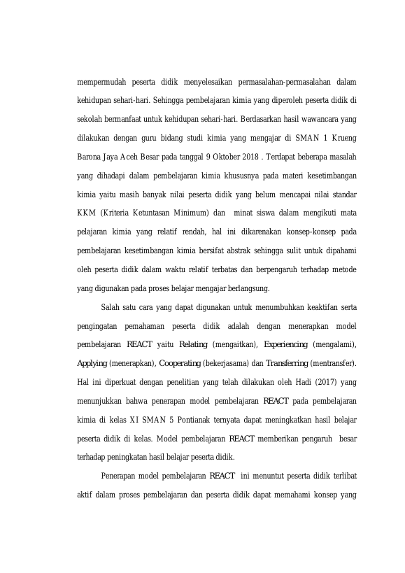 Baca Juga : PENERAPAN MODEL PEMBELAJARAN ARTIKULASI PADA MATERI LAJU REAKSI DI KELAS XI SMAN 1 KRUENG BARONA JAYA ACEH BESAR TAHUN PELAJARAN 2013/2014 (NOVITA SARI, 2015)