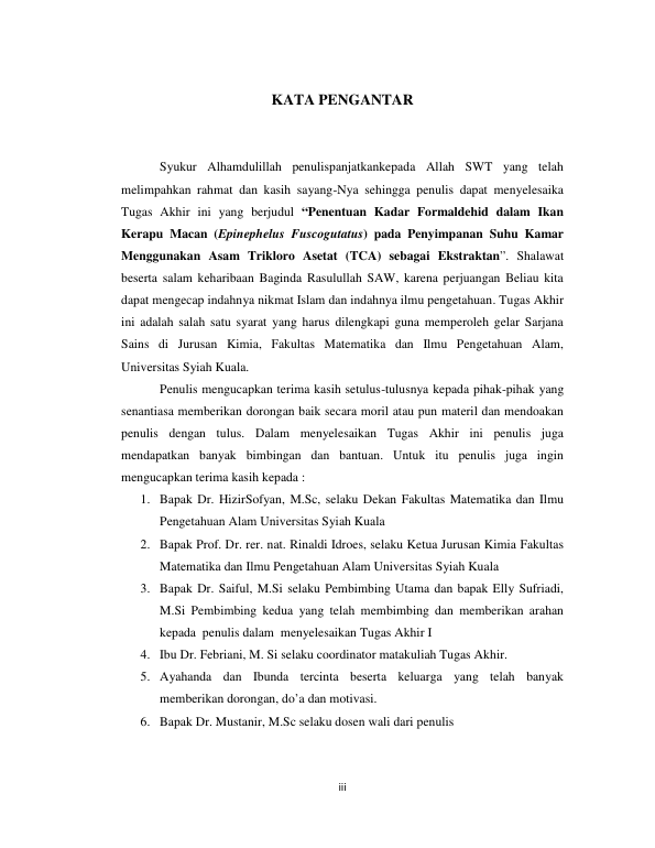 Baca Juga : PENENTUAN KADAR FORMALDEHID DALAM IKAN KERAPU CANTANG (EPINEPHELUS SP) PADA PENYIMPANAN SUHU KAMAR DENGAN MENGGUNAKAN ASAM TRIKLORO ASETAT (TCA) SEBAGAI EKSTRAKTAN (Sofia Munira, 2016)