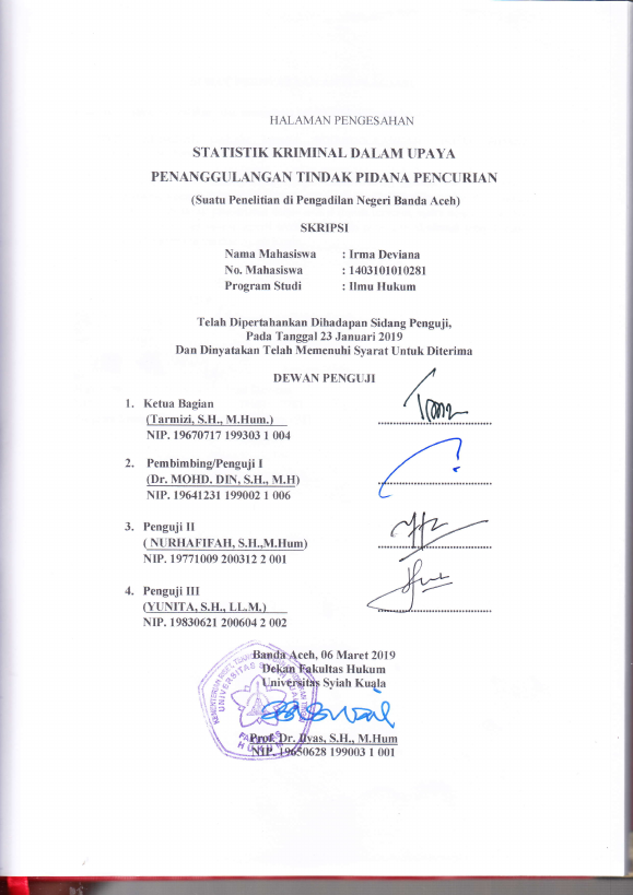 STATISTIK KRIMINAL DALAM UPAYA PENANGGULANGAN TINDAK PIDANA PENCURIAN (SUATU PENELITIAN DI PENGADILAN NEGERI BANDA ACEH) STATISTIK KRIMINAL DALAM UPAYA PENANGGULANGAN TINDAK PIDANA PENCURIAN (SUATU PENELITIAN DI PENGADILAN NEGERI BANDA ACEH) STATISTIK KRIMINAL DALAM UPAYA PENANGGULANGAN TINDAK PIDANA PENCURIAN (SUATU PENELITIAN DI PENGADILAN NEGERI BANDA ACEH). Banda Aceh Universitas Syiah Kuala,2019