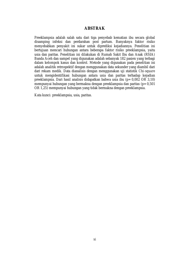Baca Juga : HUBUNGAN USIA DAN PARITAS IBU TERHADAP RISIKO TERJADINYA PREEKLAMPSIA (Cut Nurul Azzahra, 2014)