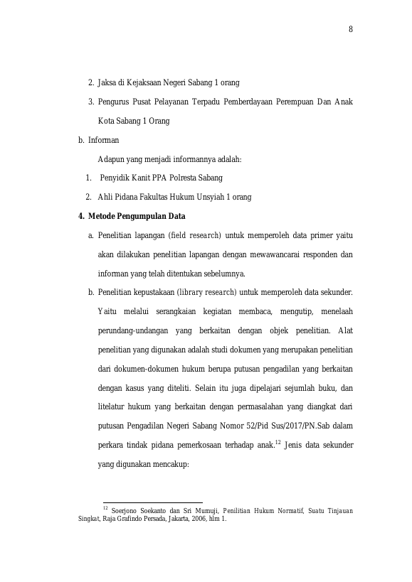 Dini Liani, TINDAK PIDANA PEMERKOSAAN TERHADAP ANAK NOMOR : 52/PID.SUS/2017/PN-SAB. Banda Aceh Universitas Syiah Kuala,2019
