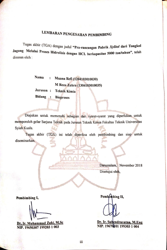 Baca Juga : PRARANCANGAN PABRIK XYLITOL DARI TONGKOL JAGUNG MELALUI PROSES HIDROLISIS DENGAN HCL BERKAPASITAS 5.000 TON/TAHUN (Muana Refi, 2019)