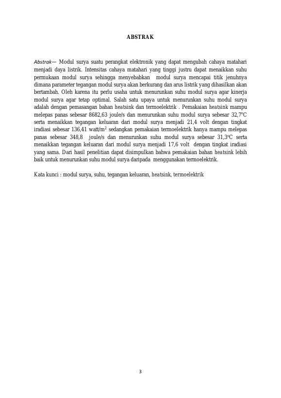 Baca Juga : ANALISA PENAMBAHAN HEATSINK DAN TERMOELEKTRIK TERHADAP KINERJA PANEL SURYA (Teuku Mizan Sya`rani Denk, 2019)
