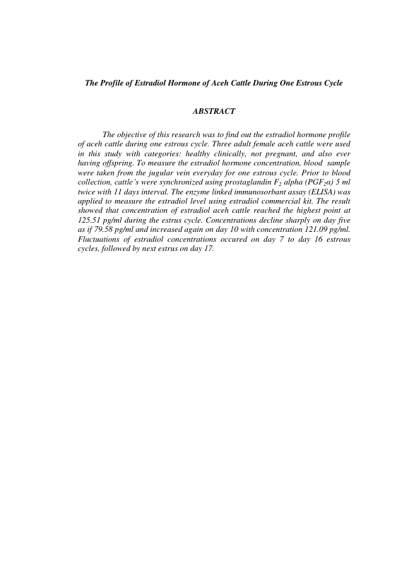 juliana Rossa, PROFIL HORMON ESTRADIOL SAPI ACEH SELAMA SATU SIKLUS BERAHI. Banda Aceh Fakultas Kedokteran Hewan,2014