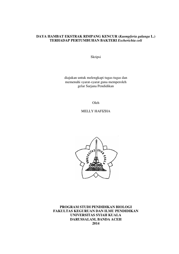 Baca Juga : UJI AKTIVITAS ANTIBAKTERI EKSTRAK ETANOL RIMPANG KENCUR (KAEMPFERIA GALANGA L) TERHADAP ISOLAT KLINIS KLEBSIELLA PNEUMONIAE PENGHASIL ESBL SECARA IN VITRO (FITRA HAYATI, 2017)