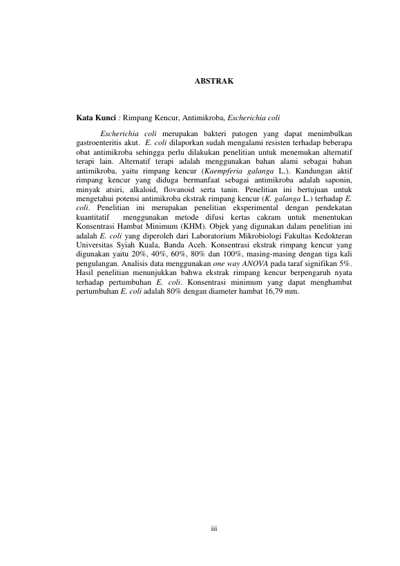 Baca Juga : UJI AKTIVITAS ANTIBAKTERI EKSTRAK ETANOL RIMPANG KENCUR (KAEMPFERIA GALANGA L) TERHADAP ISOLAT KLINIS KLEBSIELLA PNEUMONIAE PENGHASIL ESBL SECARA IN VITRO (FITRA HAYATI, 2017)