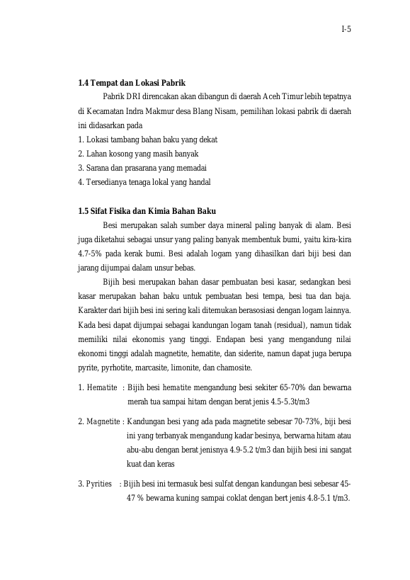 Baca Juga : PRARANCANGAN PABRIK SPONGE IRON DENGAN KAPASITAS PRODUKSI 250.000 TON/TAHUN (Zaki Wahyuna, 2016)