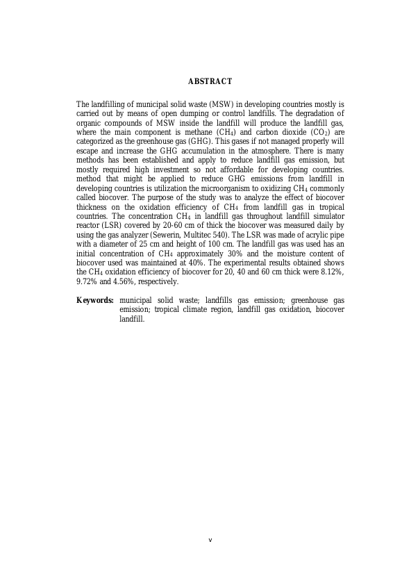 YUSNAN, PENGARUH KETEBALAN BIOCOVER PADA LAJU OKSIDASI METANA UNTUK MENGURANGI EMISI GAS LANDFILL DARI TEMPAT PEMBUANGAN AKHIR SAMPAH KOTA DI WILAYAH BERIKLIM TROPIS. Banda Aceh Universitas Syiah Kuala,2019