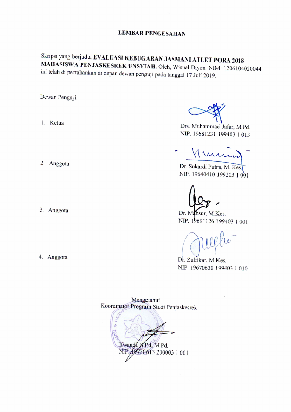 Baca Juga : PERBANDINGAN TINGKAT KEBUGARAN JASMANI MAHASISWA SEBELUM DAN SESUDAH KULIAH I SEMESTER PADA PROGRAM STUDI PENJASKESREK FKIP UNSYIAH ANGKATAN 2018 (Aulia Rizki Al Sobari, 2019)
