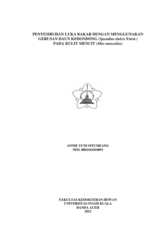 Baca Juga : GAMBARAN MIKROSKOPIS PENYEMBUHAN LUKA BAKAR YANG DIBERI GERUSAN DAUN KEDONDONG (SPONDIAS DULCIS FORST.) PADA MENCIT (MUS MUSCULUS L.) (Rahmad Hidayat, 2014)