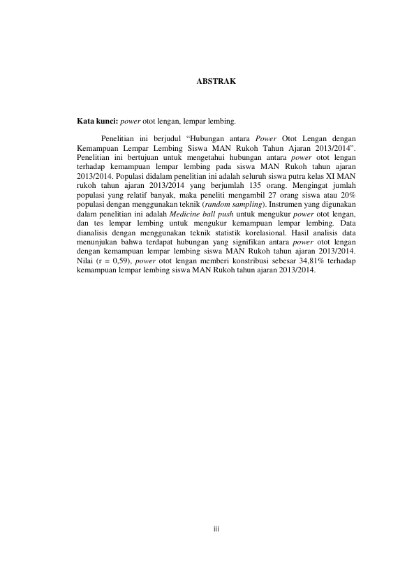 Baca Juga : HUBUNGAN DAYA LEDAK OTOT LENGAN BAHU TERHADAP KEMAMPUAN LEMPAR LEMBING PADA SISWA KELAS X SMA NEGERI 5 KOTA LANGSA TAHUN PELAJARAN 2013/2014 (MUHAMMAD ZAKIR, 2014)