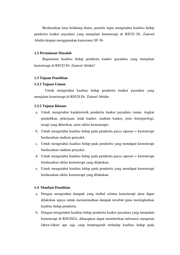 Baca Juga : KUALITAS HIDUP PENDERITA RNKANKER PAYUDARA RNYANG MENJALANI KEMOTERAPI RNDI RSUD DR. ZAINOEL ABIDIN BANDA ACEH SEPTEMBER S.D OKTOBER 2011 (desti purnamasari, 2014)