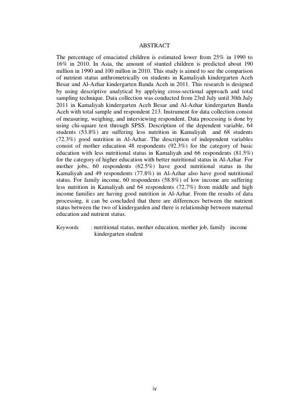 Baca Juga : HUBUNGAN PEMBERIAN ASI EKSKLUSIF, PARITAS DAN PENGETAHUAN IBU TERHADAP STATUS GIZI MURID TAMAN KANAK - KANAK FAKULTAS KEGURUAN ILMU PENDIDIKAN UNSYIAH KOTA BANDA ACEH (Aznil Fajri, 2015)
