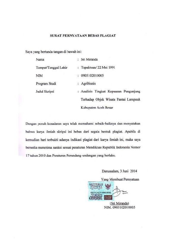 Baca Juga : ANALISIS TINGKAT KEPUASAN PENGUNJUNG TERHADAP OBJEK WISATA PANTAI LAMPUUK RNKABUPATEN ACEH BESAR (Sri Miranda, 2014)
