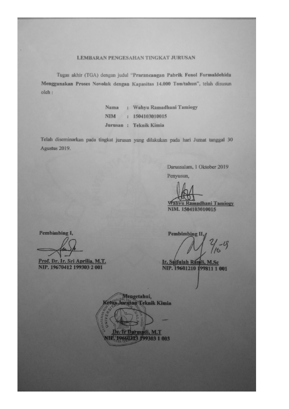 Baca Juga : PRARANCANGAN PABRIK RESIN FENOL FORMALDEHID DENGAN KAPASITAS PRODUKSI 19.000 TON/TAHUN (ELZA YUNI AFRI, 2021)