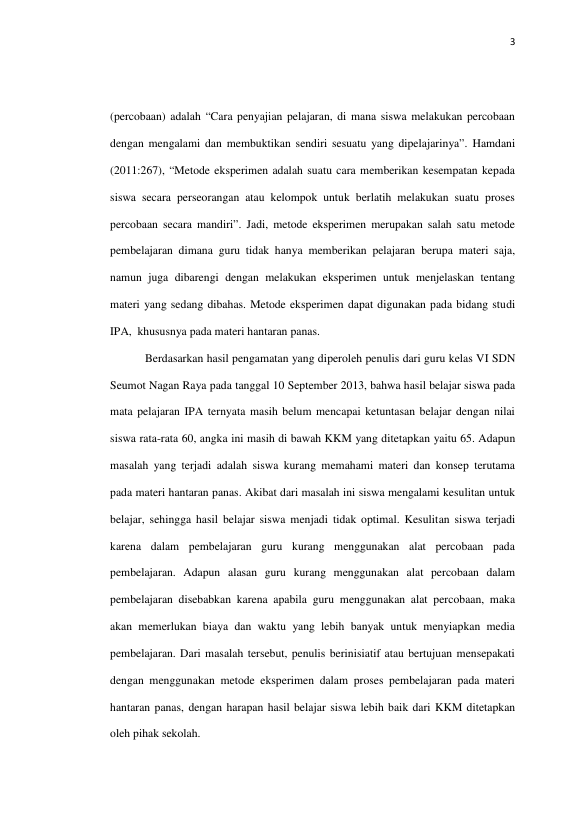 siska irmayani, PENGGUNAAN METODE EKSPERIMEN TERHADAP KETUNTASAN HASIL BELAJAR SISWA PADA MATERI HANTARAN PANAS DI KELAS VI SDN SEUMOT NAGAN RAYA. Banda Aceh Fakultas Keguruan dan Ilmu Pendidikan,2014