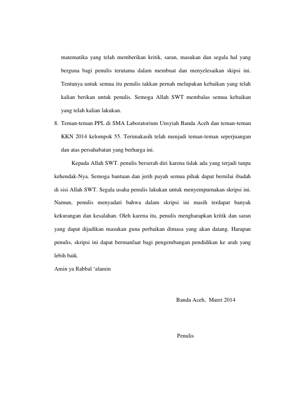 Baca Juga : HASIL BELAJAR DAN KESULITAN SISWA DALAM MEMPELAJARI MATERI BENTUK ALJABAR DI KELAS VII SMP NEGERI 1 BANDA ACEH TAHUN PELAJARAN 2013/2014 (Irwitadia Hasibuan, 2014)