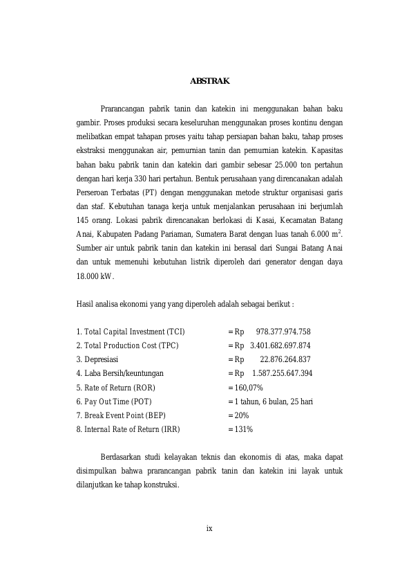 Baca Juga : PRARANCANGAN PABRIK TANIN DAN KATEKIN DARI GAMBIR DENGAN KAPASITAS BAHAN BAKU 25.000 TON/TAHUN (M. Ichsan Ghozali, 2019)